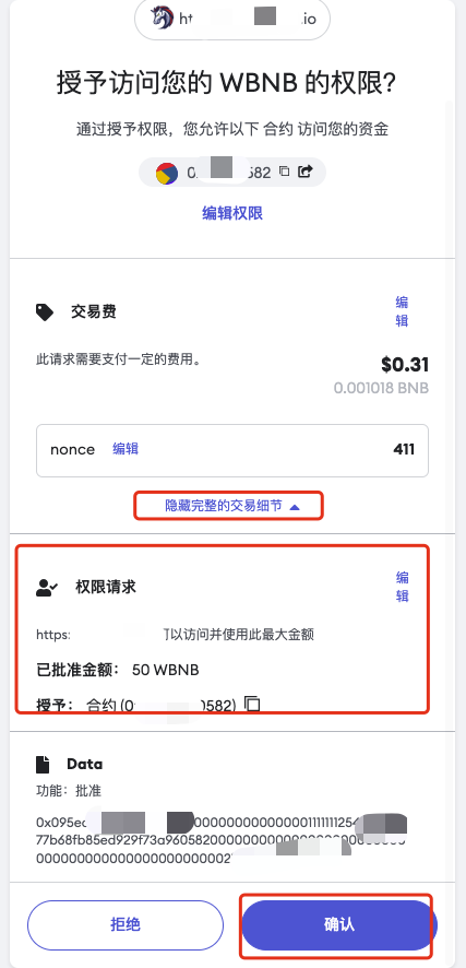 3、查看交易细节,核对信息是是否正确。确认后进行交易