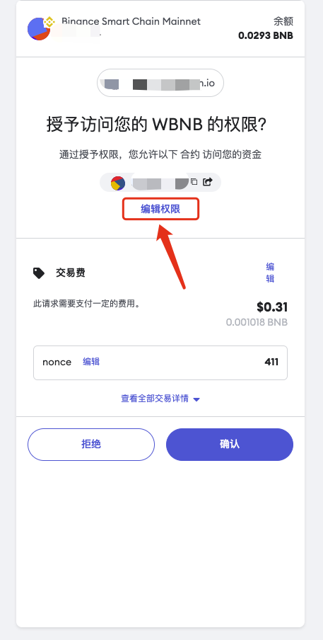 1、调用钱包授权,点击编辑权限(首次调用会出现该授权,若已全授权,请先取消原授权,再进行操作。取消方法详见《如何查看/取消已授权的币种》教程)