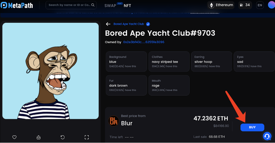 Taking the purchase of a "Bored Ape Yacht Club" NFT as an example: