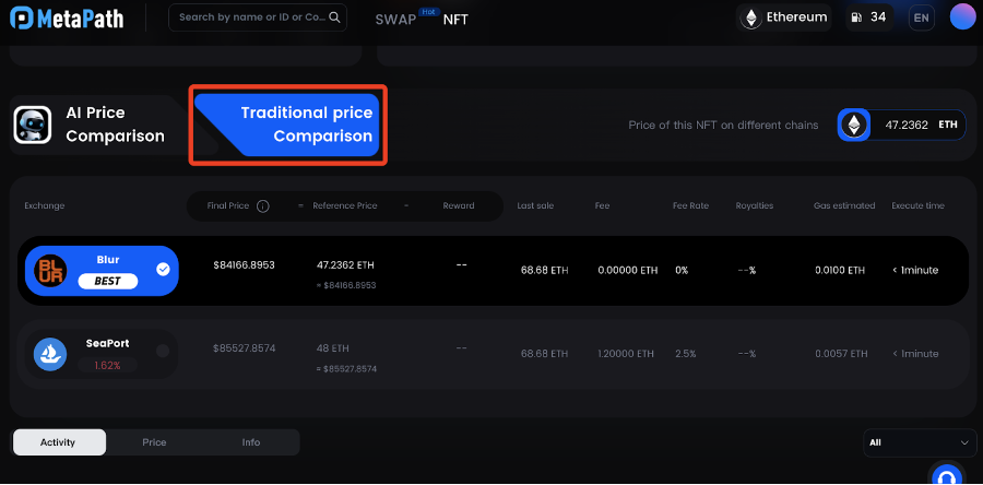 For NFT price comparison and trading, use MetaPath: <https://dapp.path.finance/#/NFT> (Accessible with any wallet).